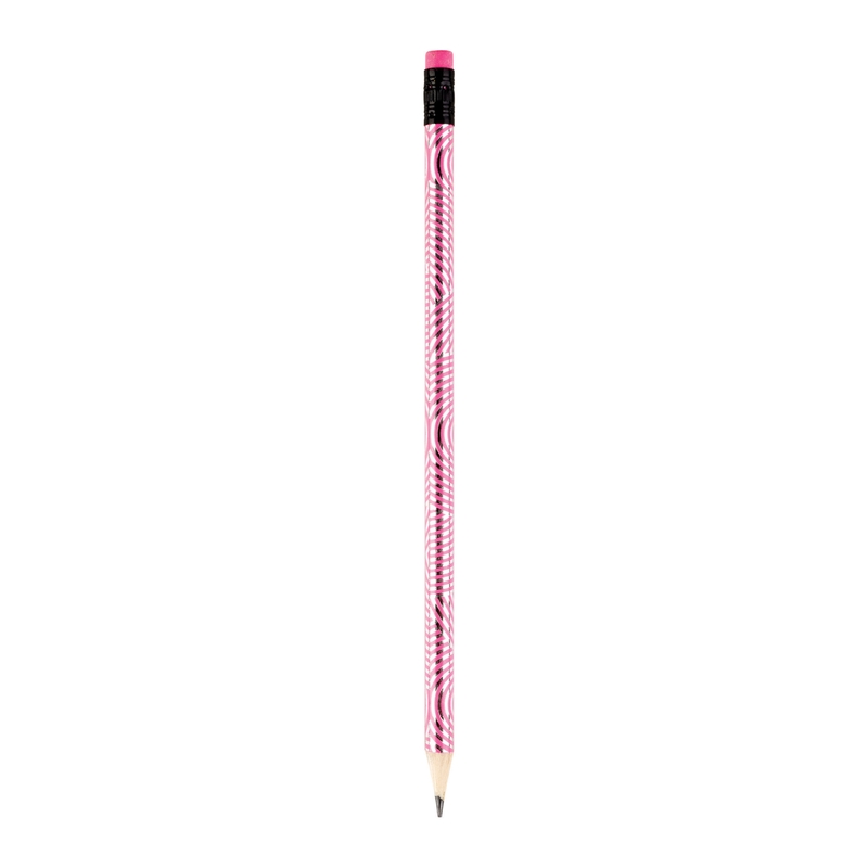 Գրաֆիտային մատիտ ռետինով, սրված, գրաֆիտի կարծրությունը՝ HB, նյութը՝ փայտ, գույները՝ դեղին, վարդագույն, կապույտ