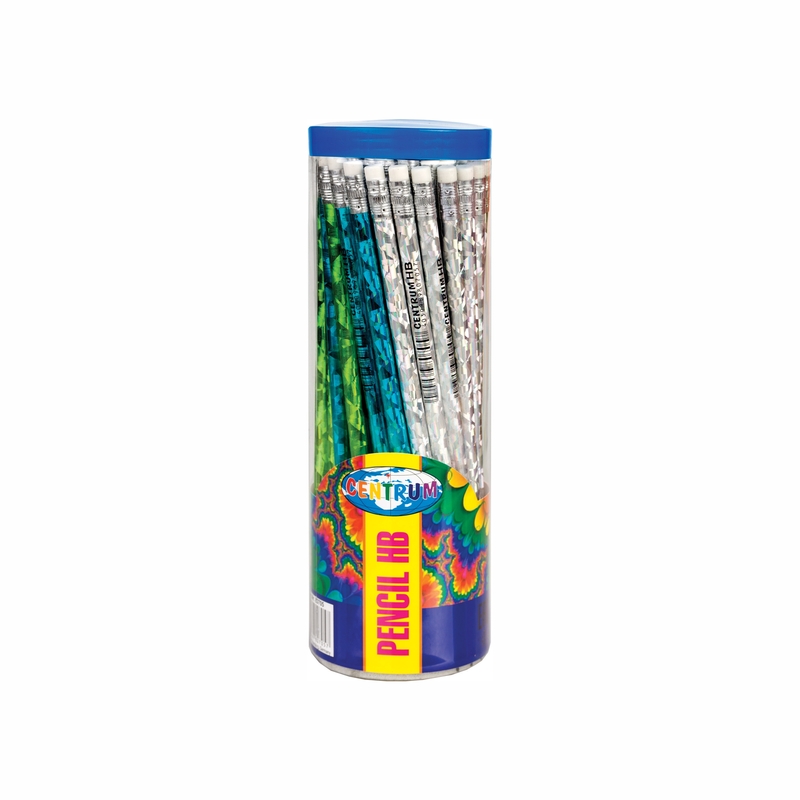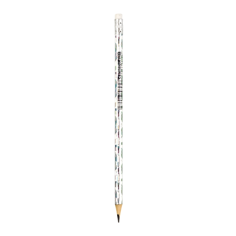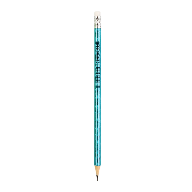 Գրաֆիտային մատիտ ռետինով, սրված, գրաֆիտի կարծրությունը՝ HB, նյութը՝ փայտ, գույները՝ նոնային՝ կանաչ, կապույտ, արծաթագույն